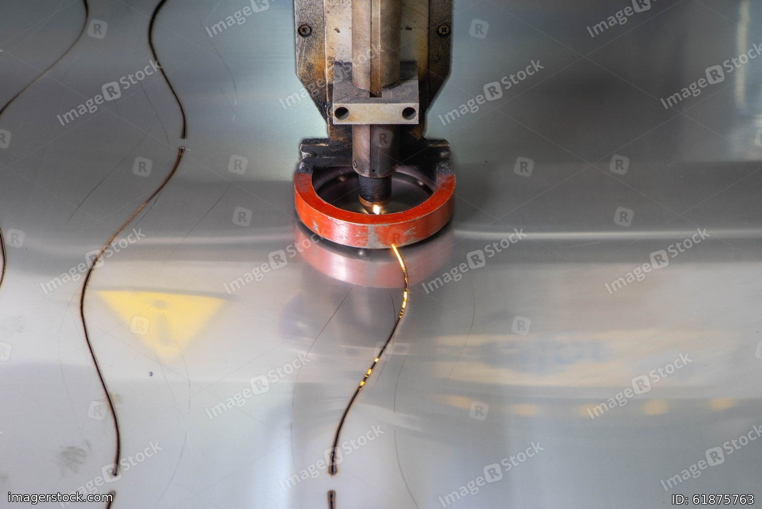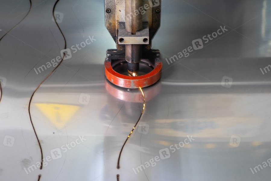 Plasma cutting of metal. Sparks fly from laser.