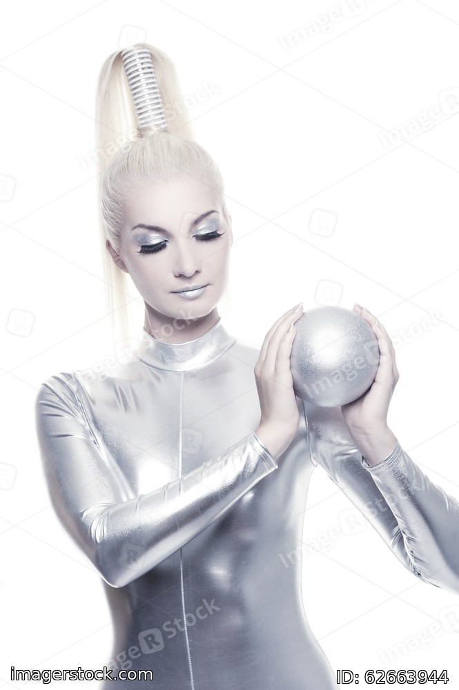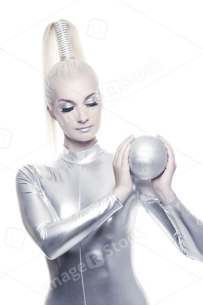 Beautiful cyber woman with silver ball