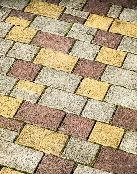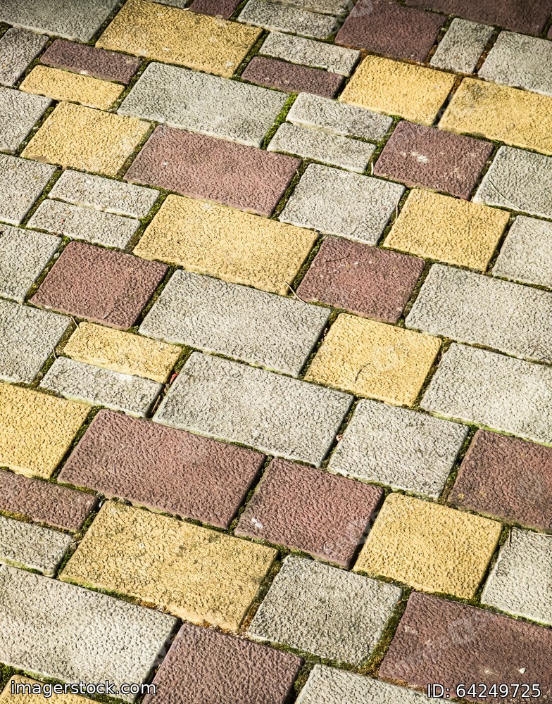 Brick road. Yellow, red, grey bricks.