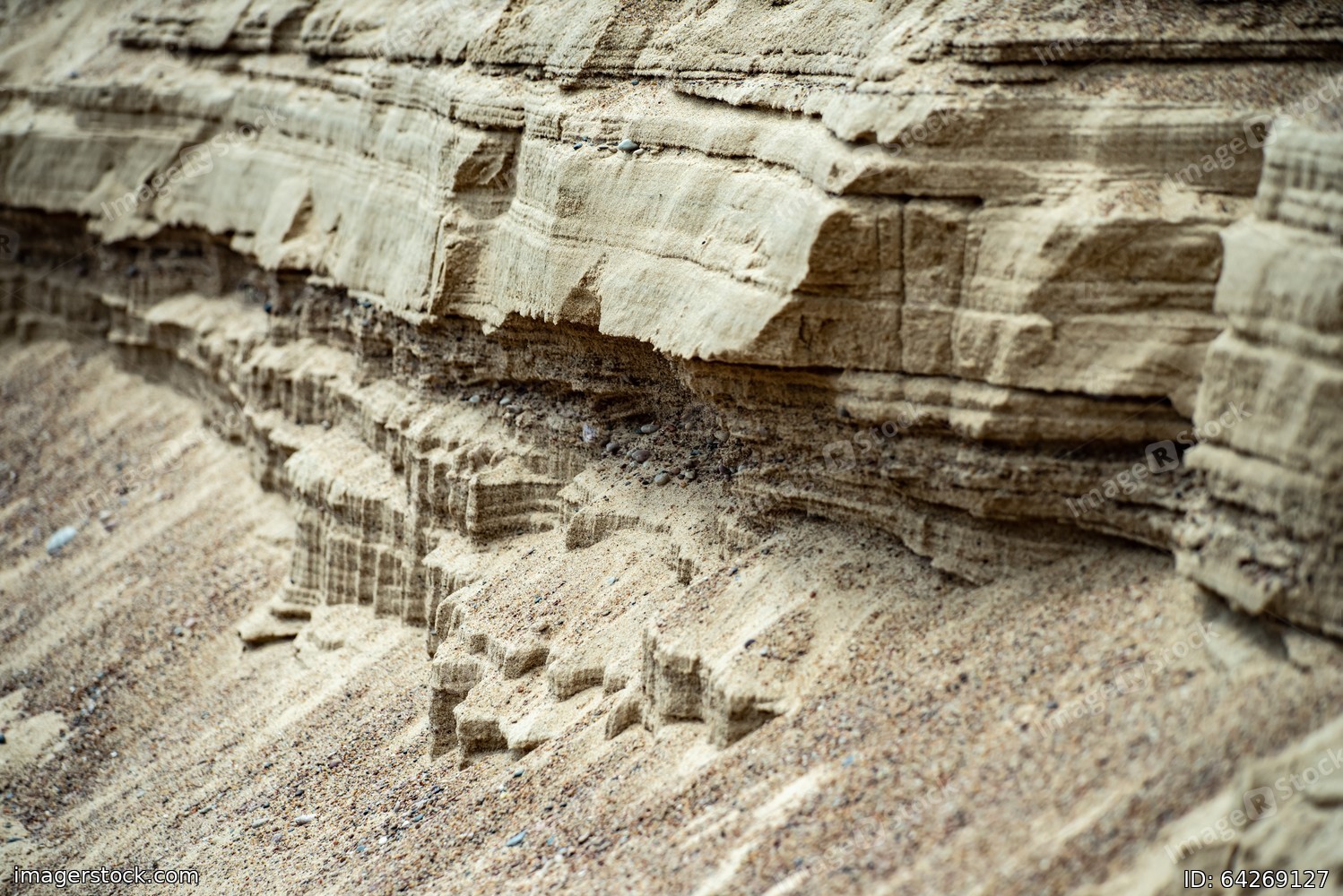 Surface sandy shore. Close-up of sandy rock