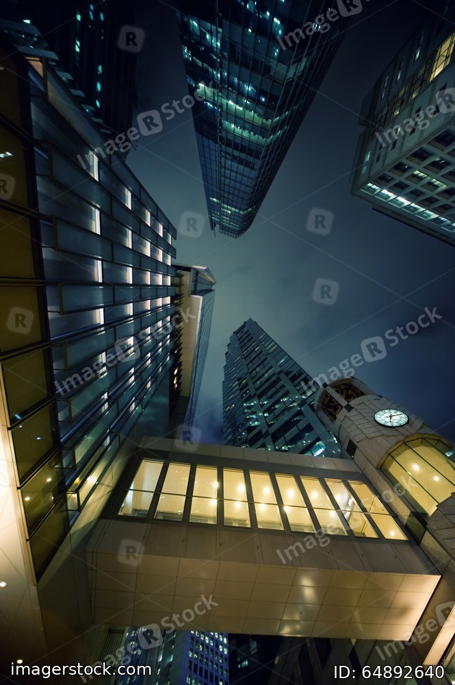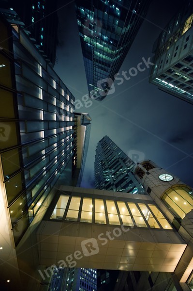 Modern skyscrapers at night time
