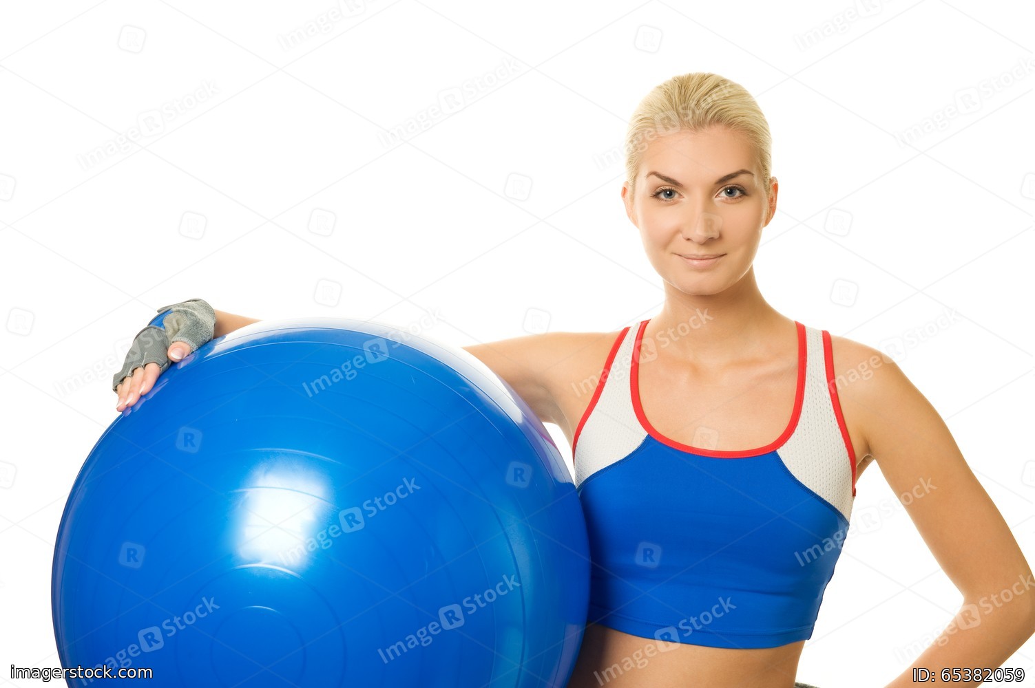 Happy trainer holding a fitness ball