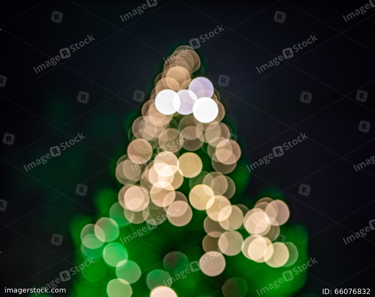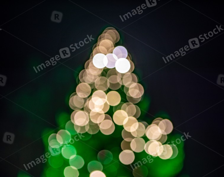 Bokeh background. Beutiful illuminated Christmas tree.