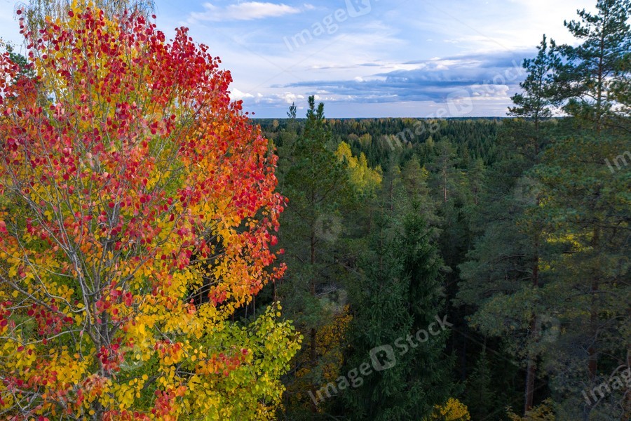Latvian autumn nature. View from the top. Trees and horizon.