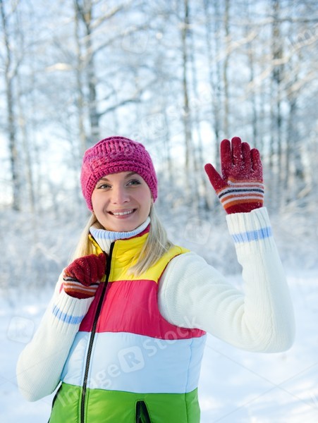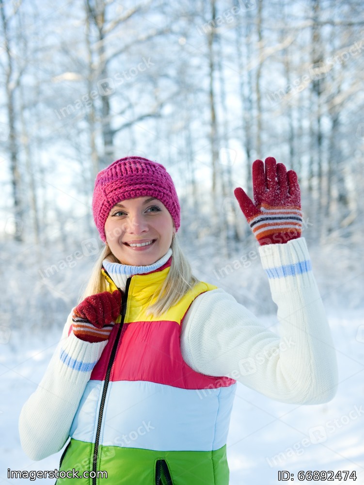 Frozen beautiful woman in winter clothing outdoors