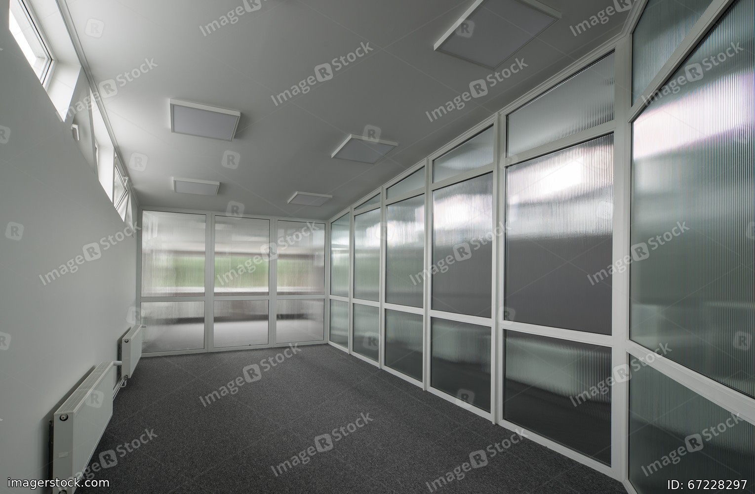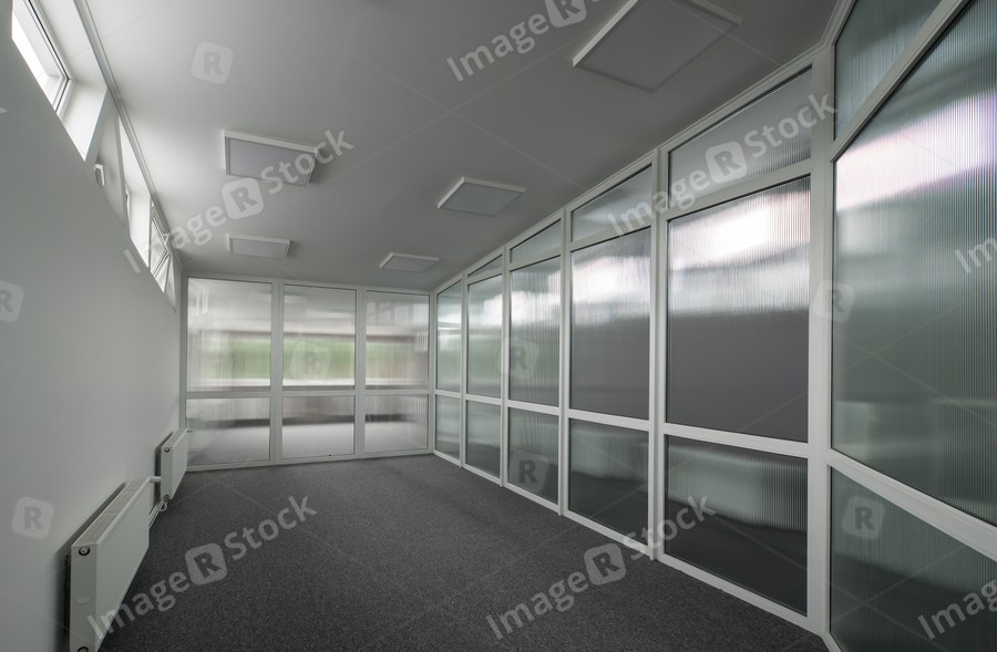 Office interior with glass walls.