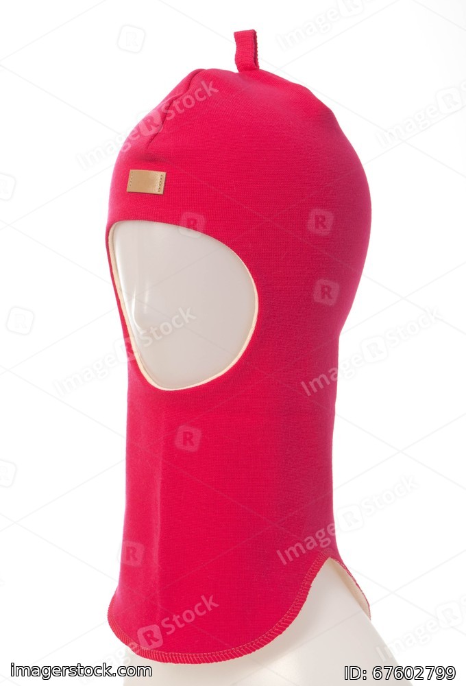 White background. Pink children hat. Winter fashion.