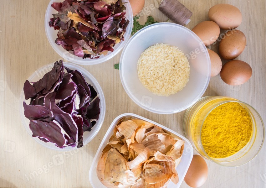 Ingredients for organic egg painting before Easter