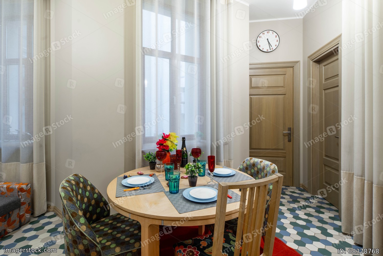 Modern interior of light studio apartment. Living room.