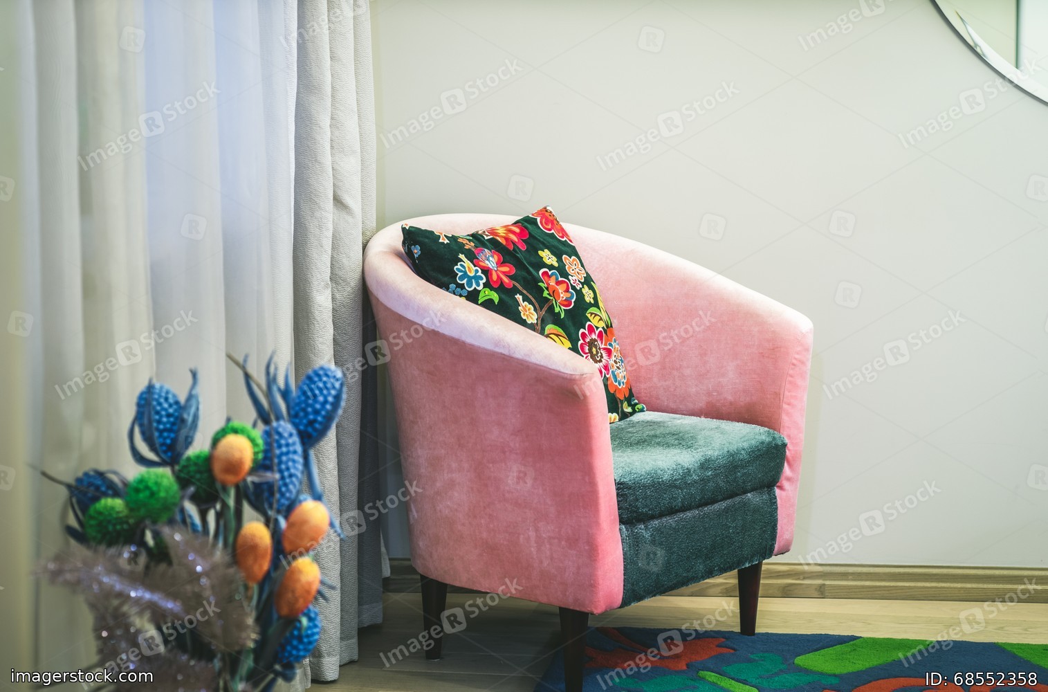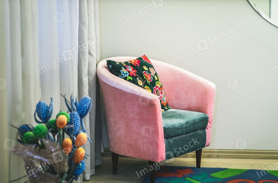 Chair in modern interior of studio apartment. Filtered.