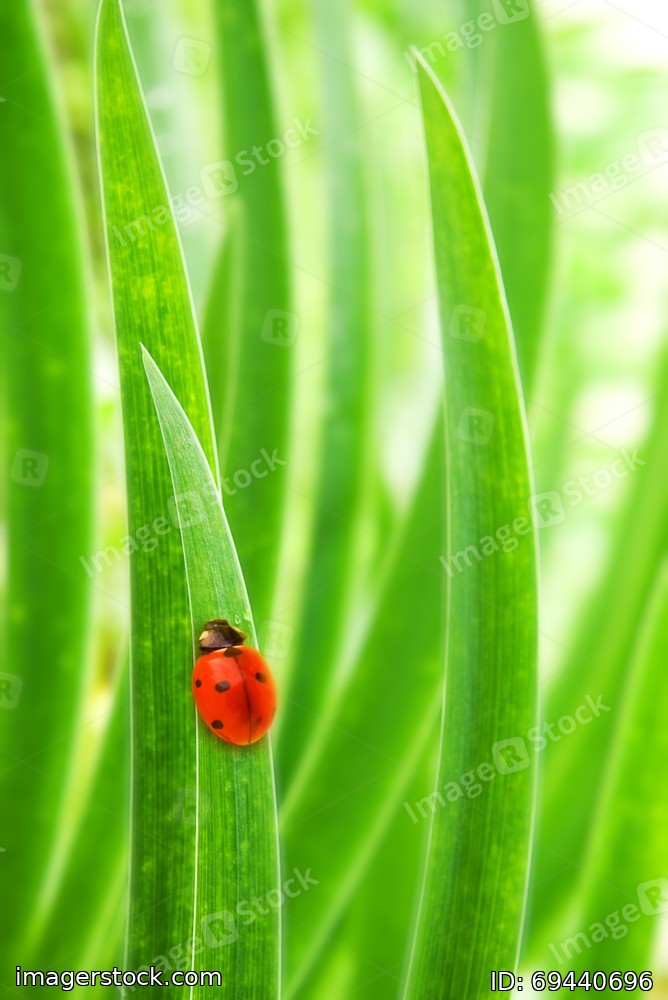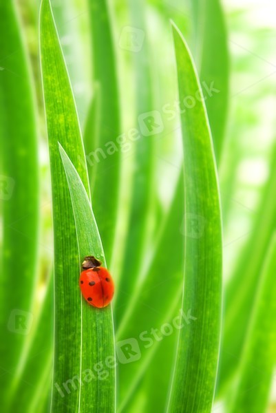 Ladybug sitting on a green grass (shallow DoF)