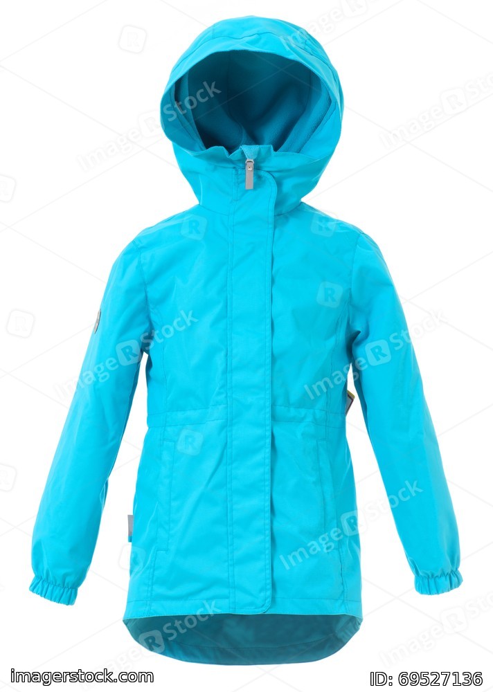 White background. Blue coat for teens and adults. WInter fashion.