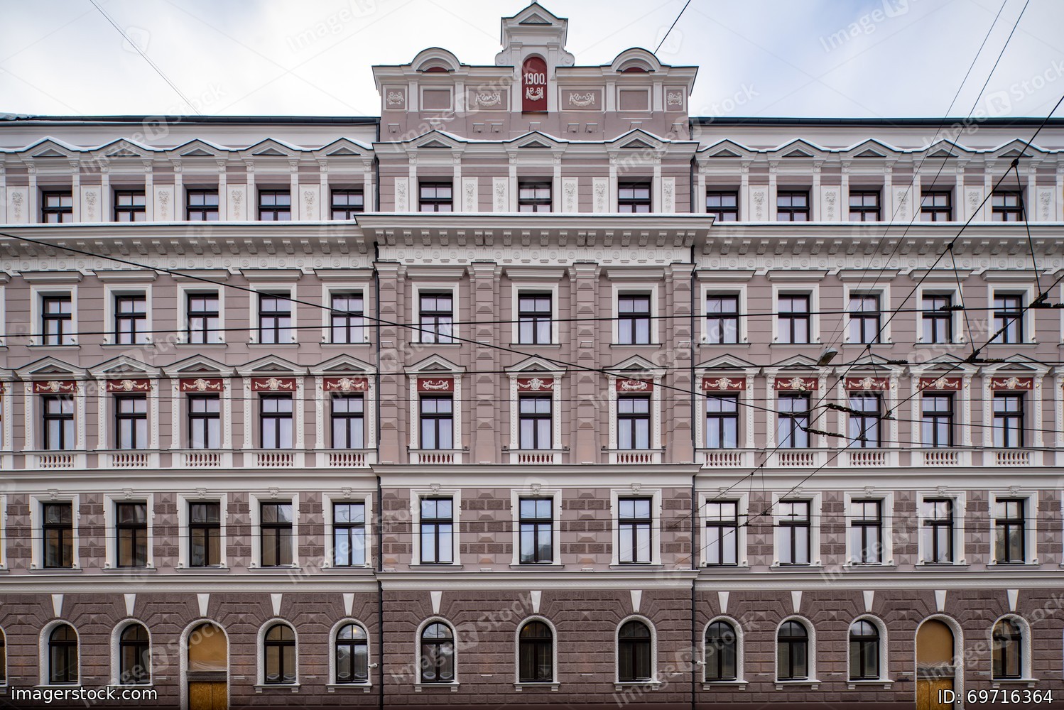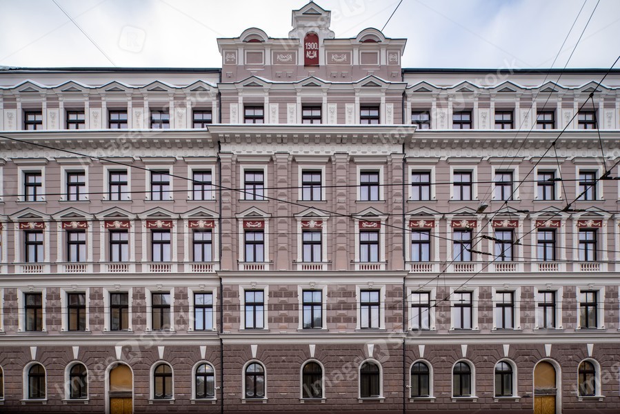 Winter cityscape of Riga. Exterior of modern residential building.