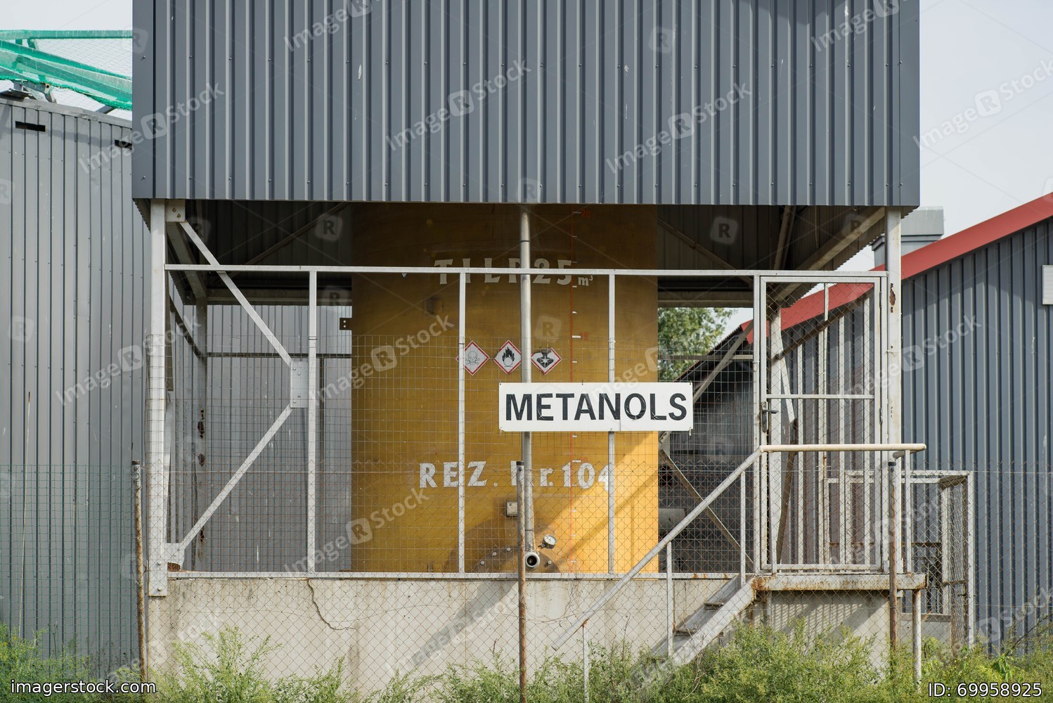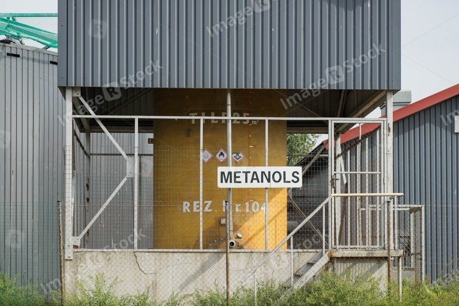 Tank of methanol at gas station. Flammable.