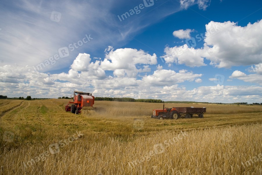 Harvesting of wheat. Tractor and special harvesting equipment.
