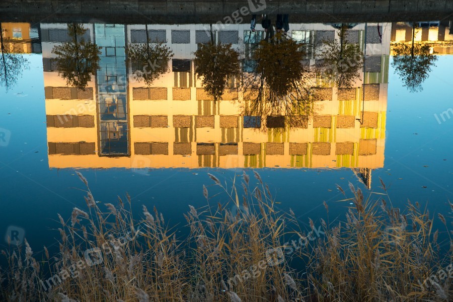 Modern architecture. Office building. Reflection on the water.