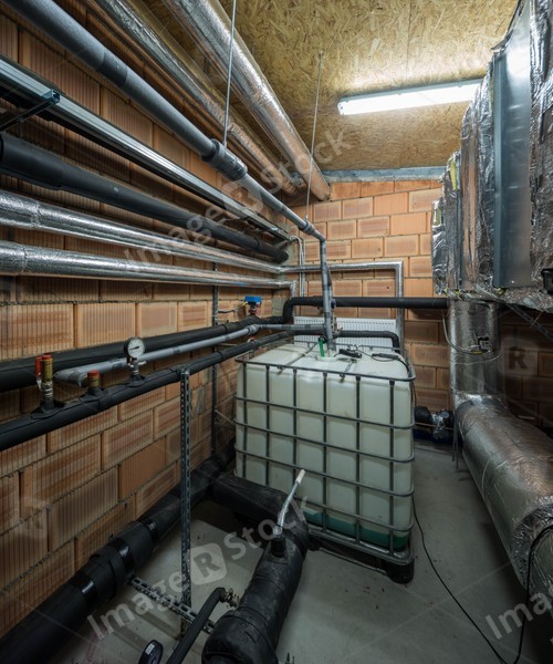 Ventilation system indoors. System of pipes.