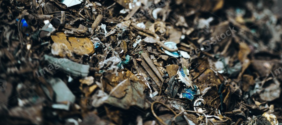 Close-up of scrap metal. Dump of rusty iron debris. Metal garbage.