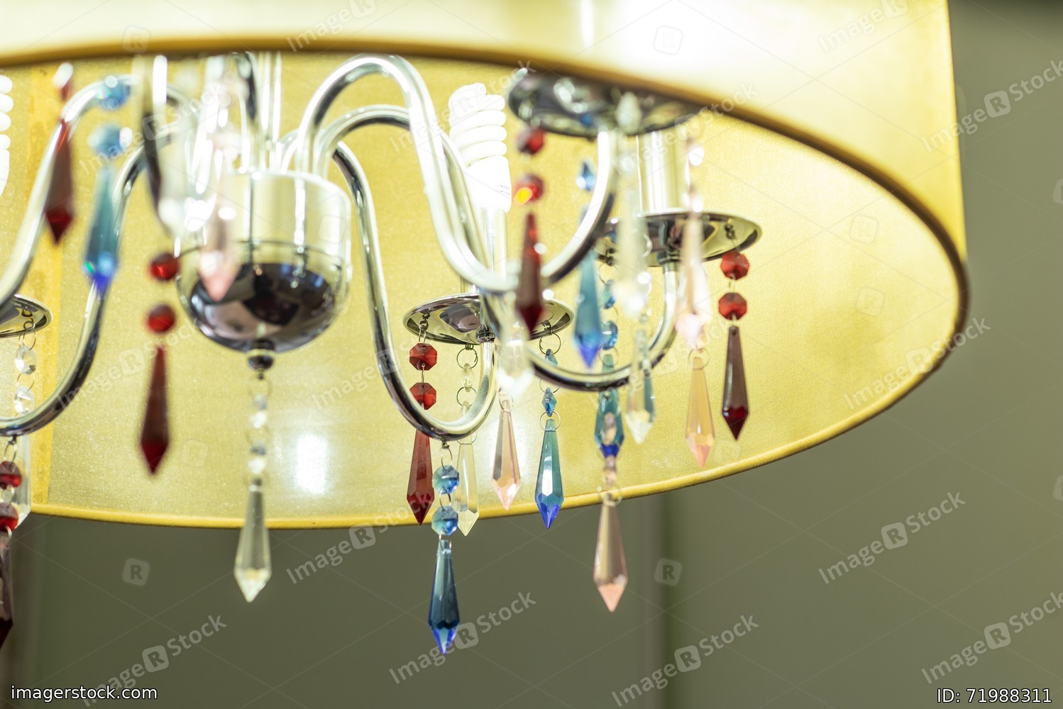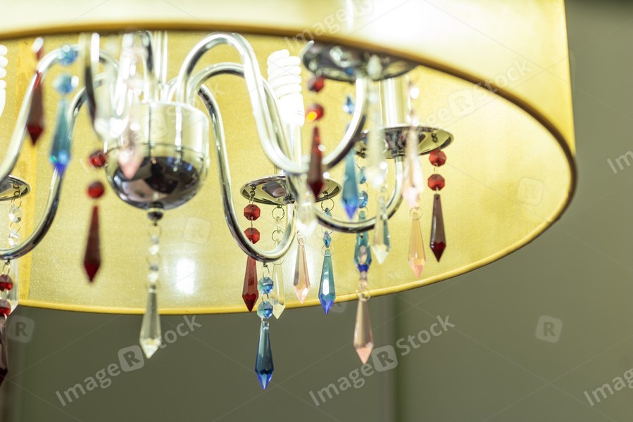 Close-up of burning lamp. Beautiful chandelier.