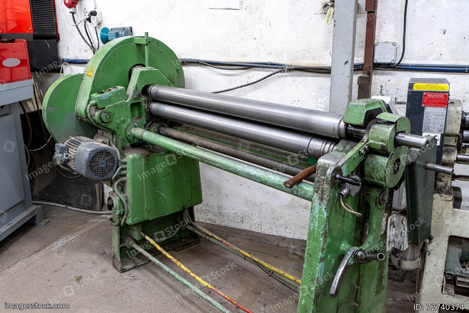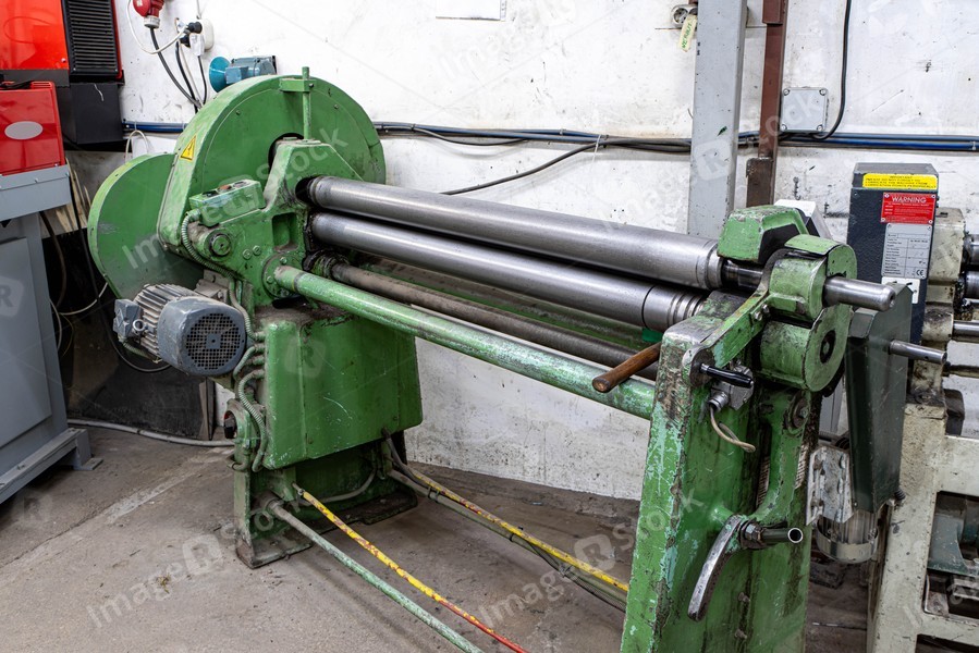 Machine for metal rolling at factory. Metal processing.