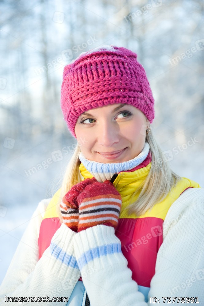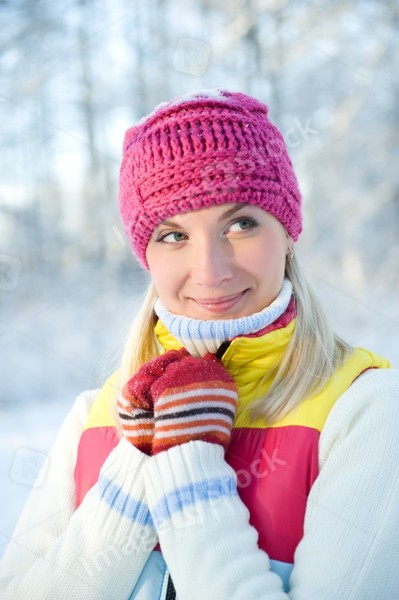 Frozen beautiful woman in winter clothing outdoors