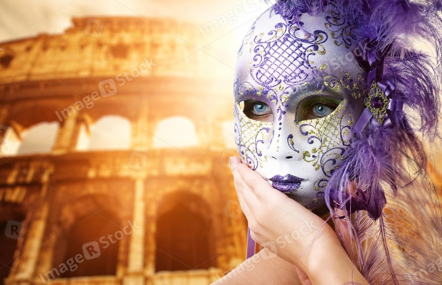 Beautiful woman in front of Colosseum (Rome, Italy)