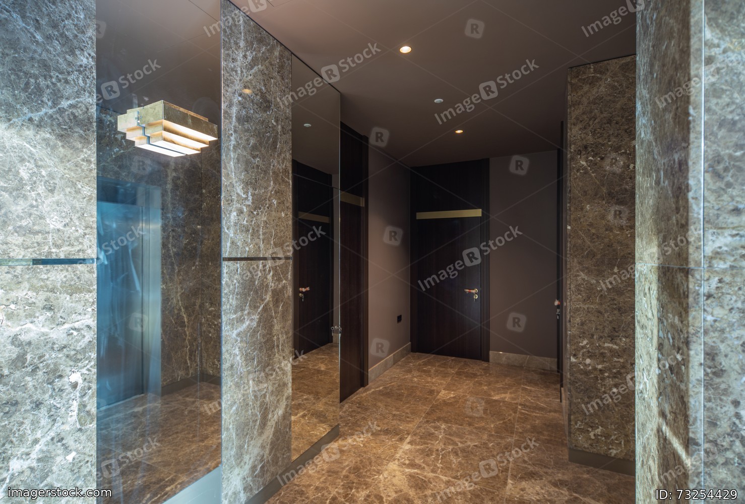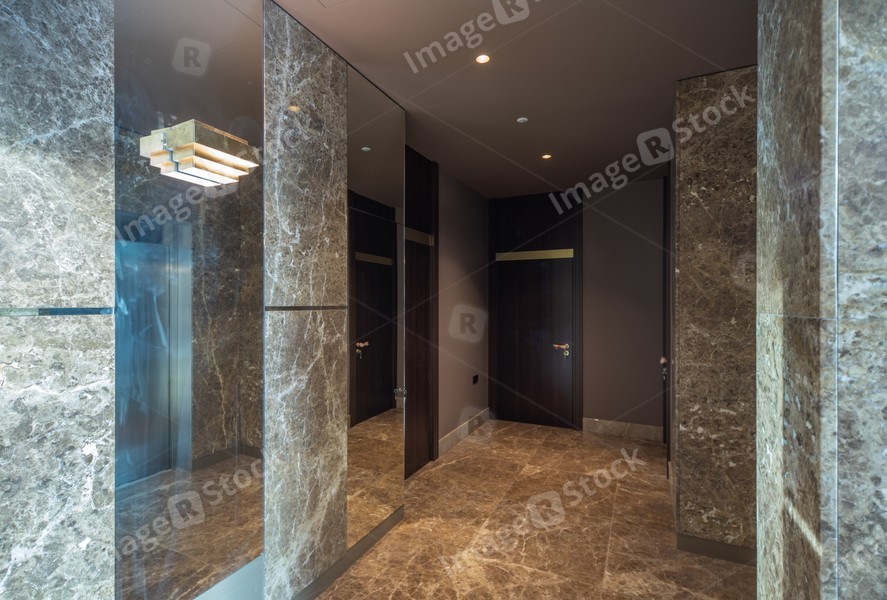 Modern marble interior of entrance hall in luxury residential building