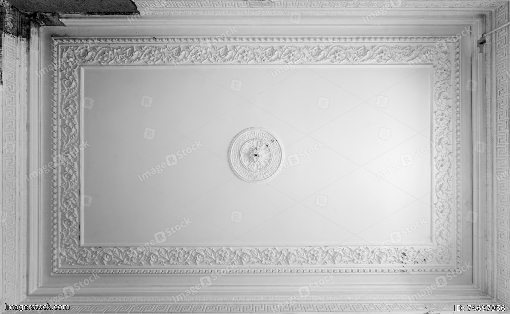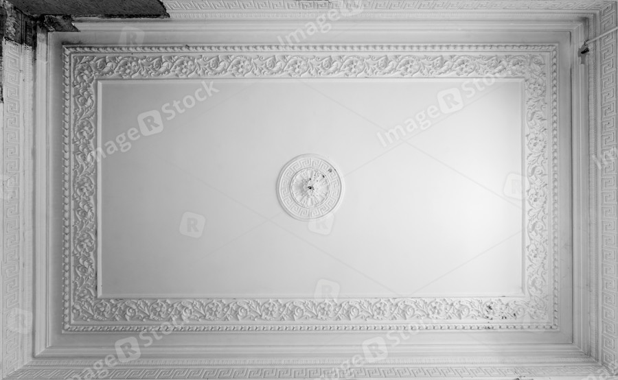 Retro moldings on the ceiling around the room. The old gypsum rosette on the celling.