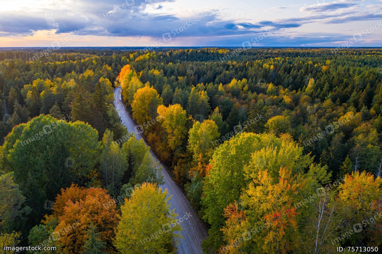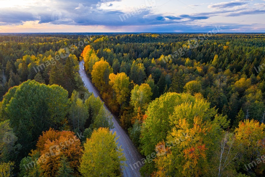 Latvian autumn nature. Forest and road. View from the top.