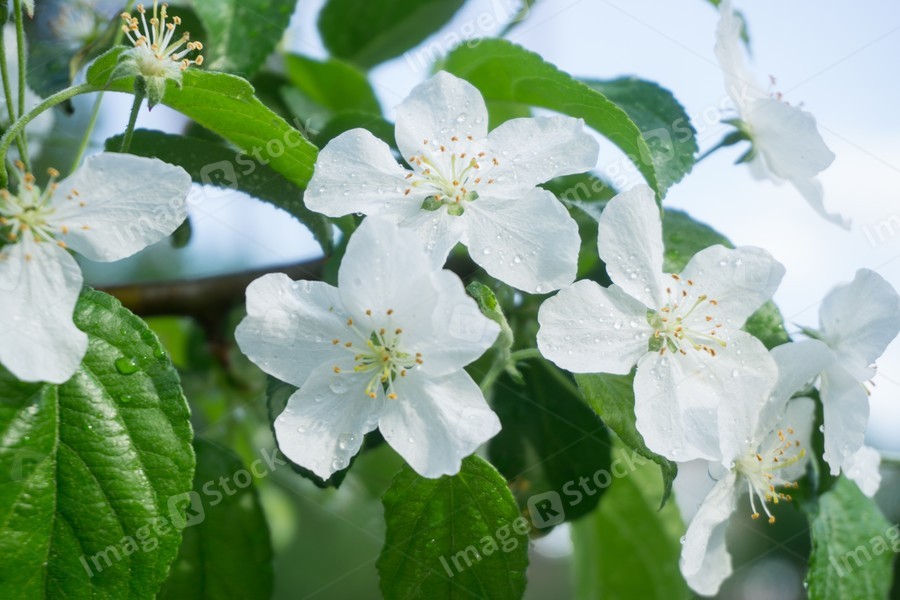 Apple tree with beautiful white flowers in late spring
