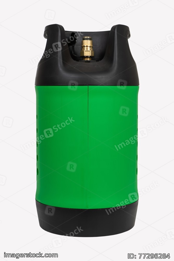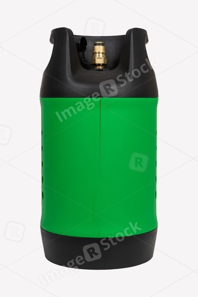 Black and green LPG gas cylinder, isolated on white