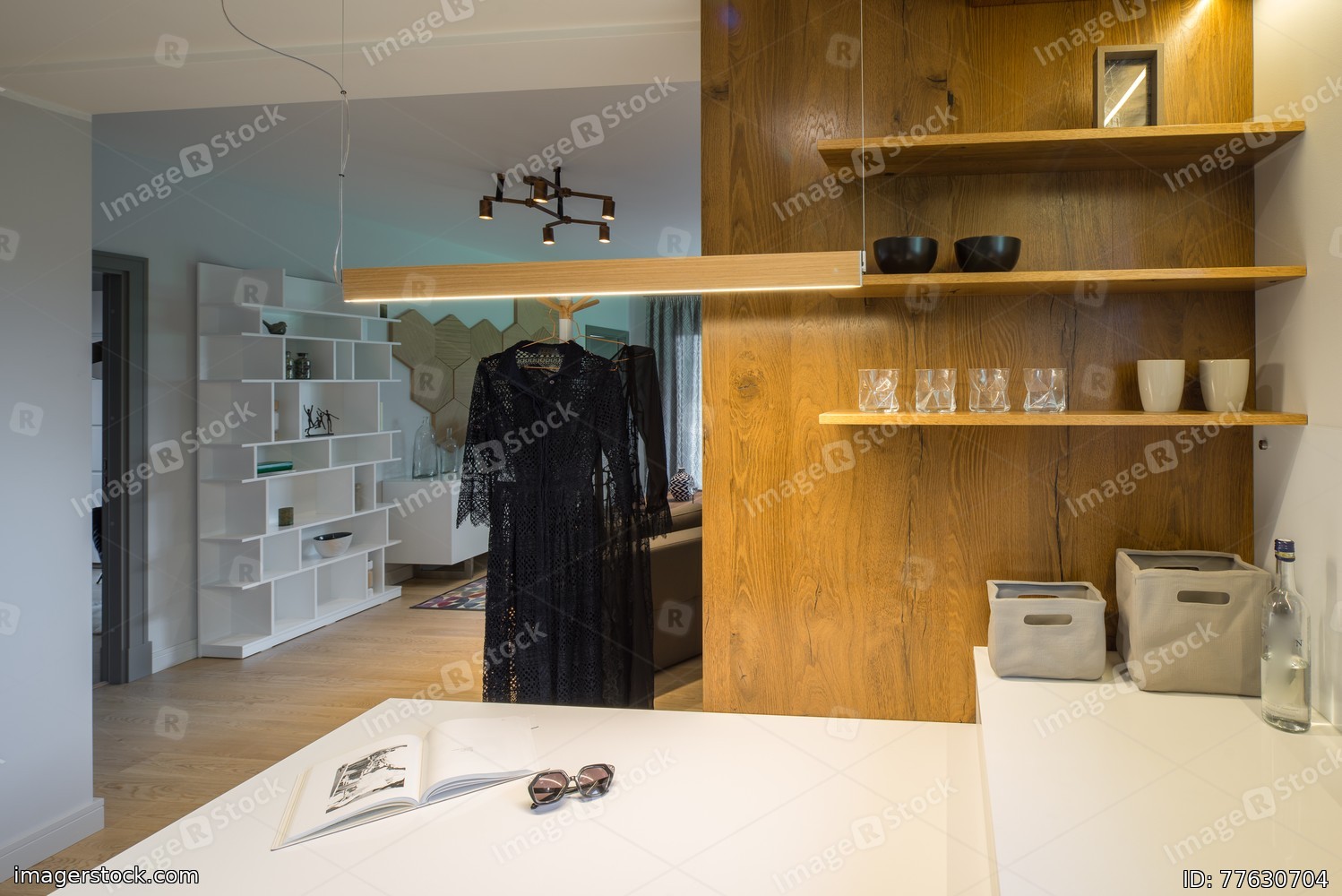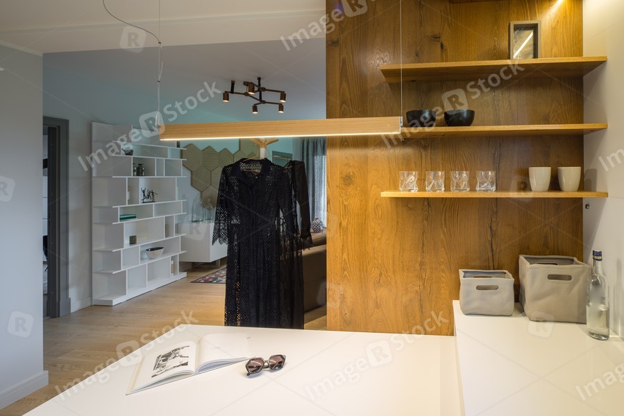 Kitchen studio interior. Modern kitchen in the house.