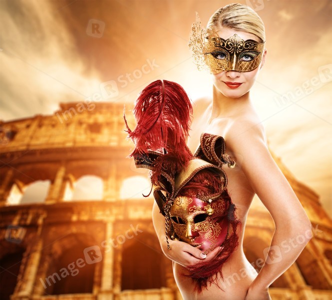 Beautiful woman in front of Colosseum (Rome, Italy)
