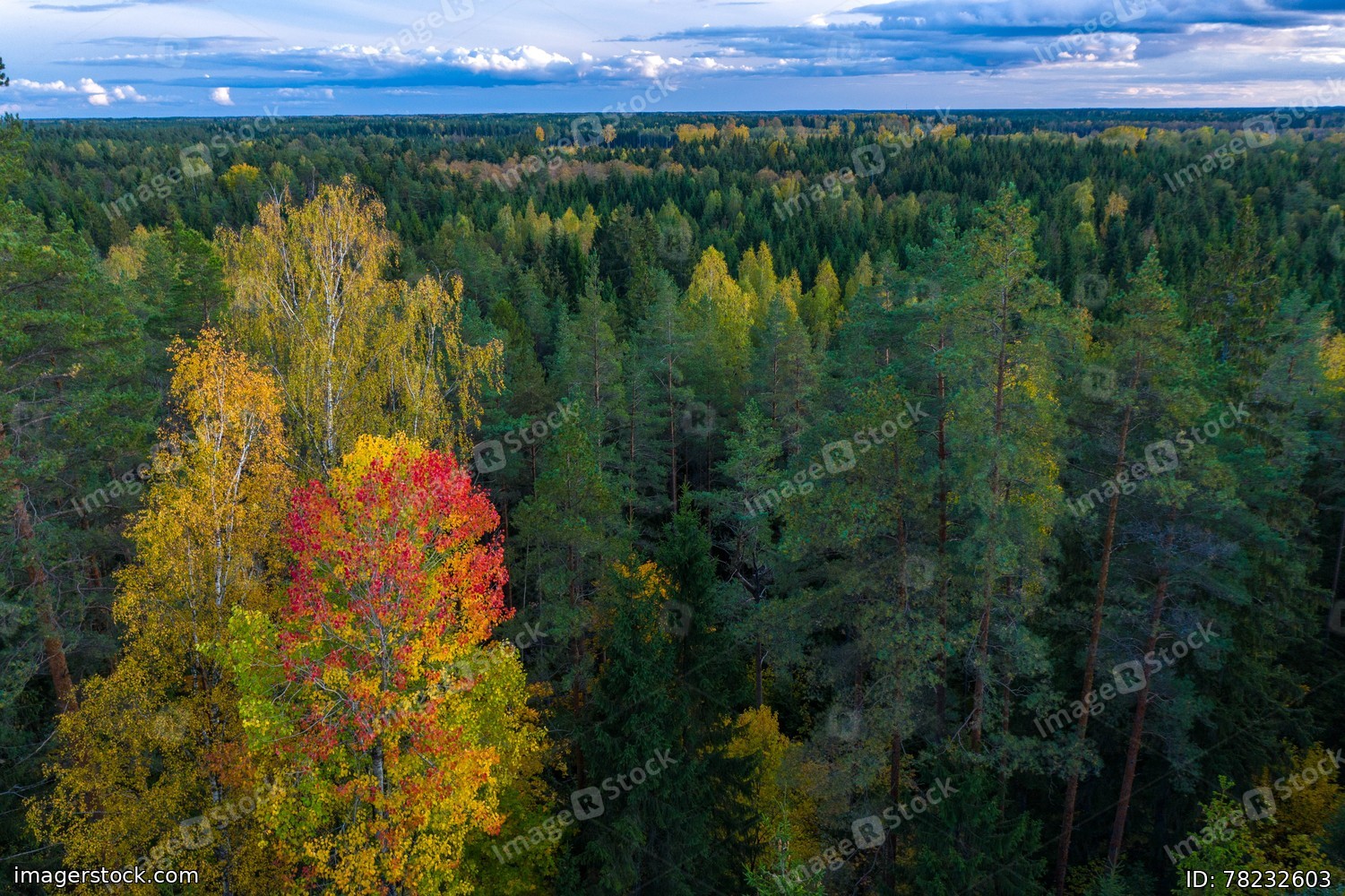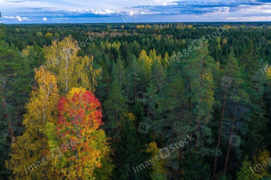 Latvian autumn nature. View from the top. Trees and horizon.