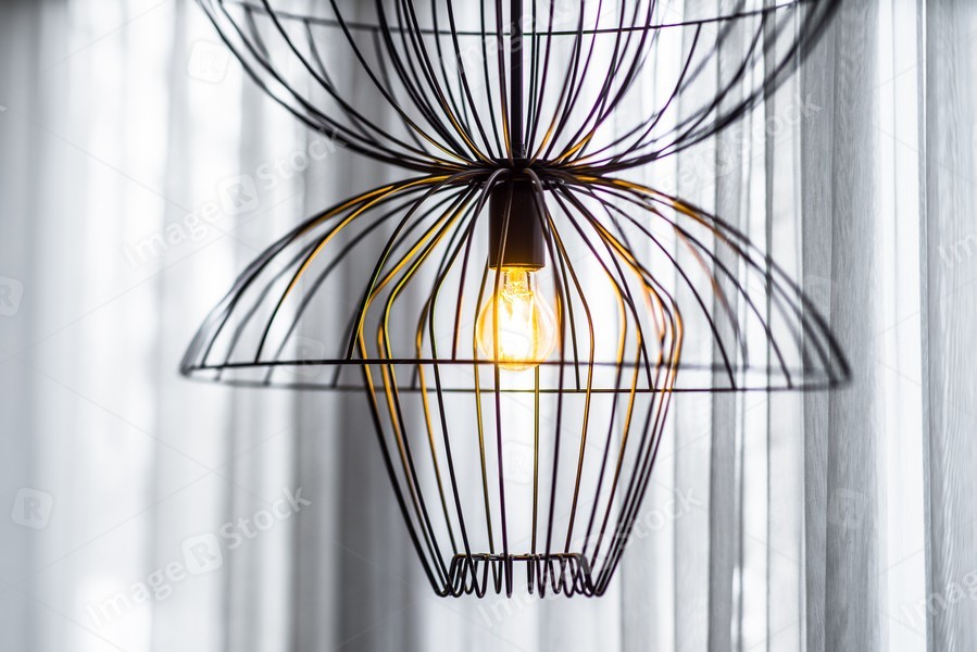 Interior of a modern apartment. Stylish lamp.