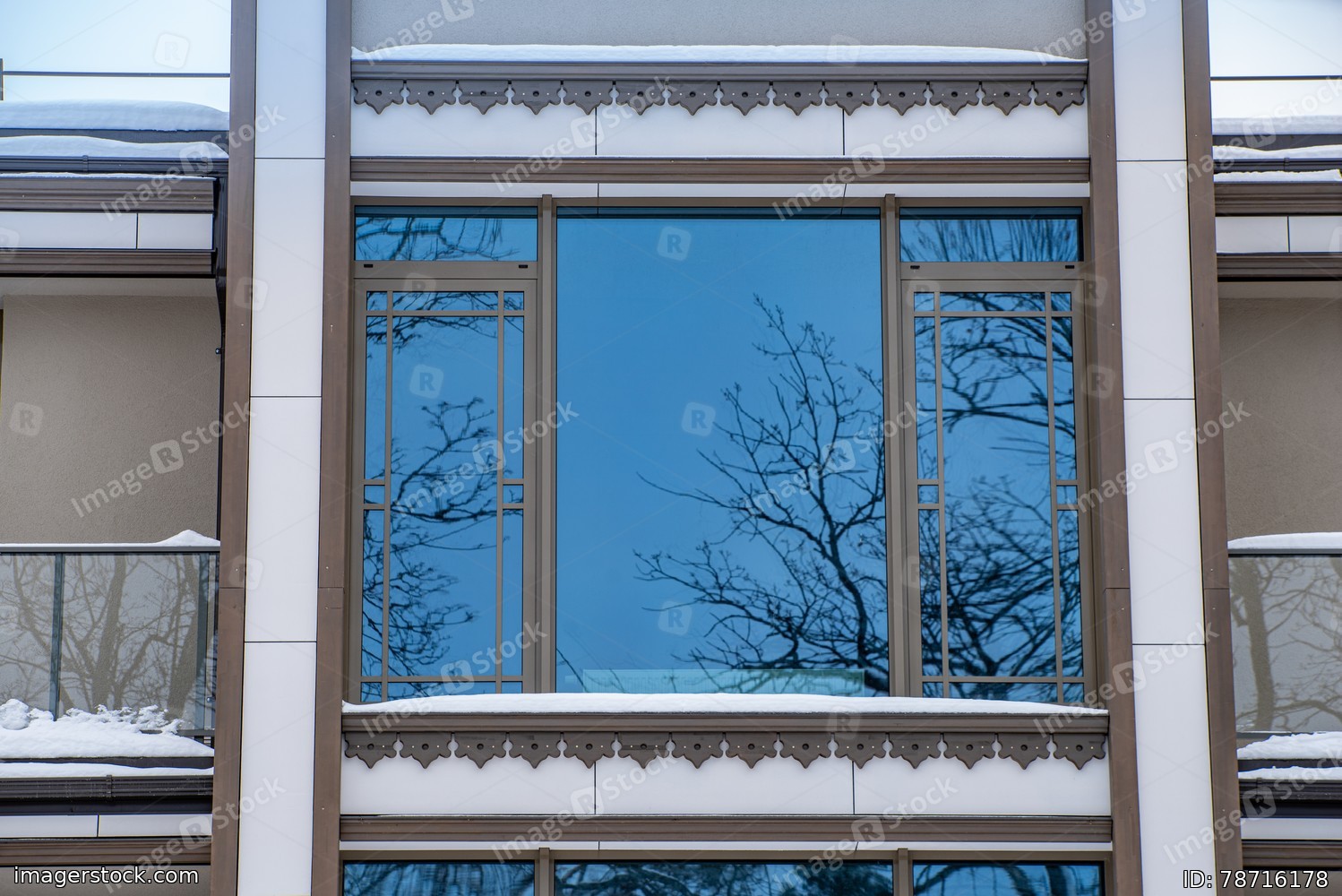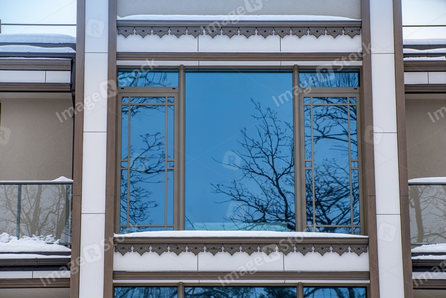 Modern exterior of luxury private house. Part of facade. Window.