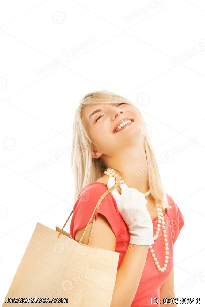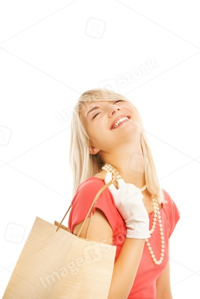 Beautiful young woman with a bags. Isolated on white background