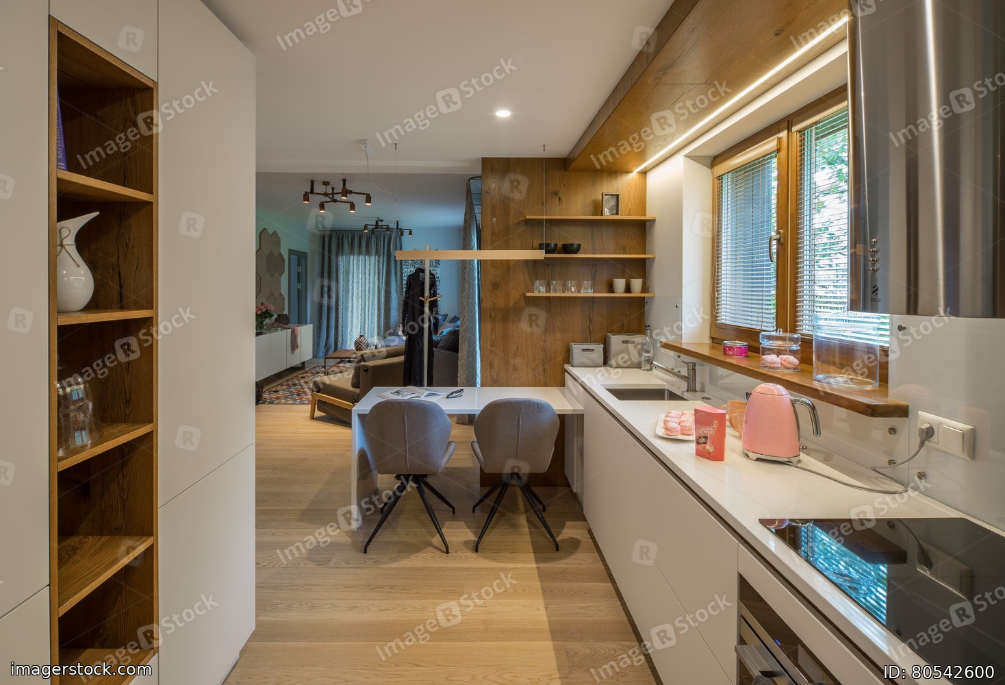 Kitchen studio interior. Modern kitchen in the house.