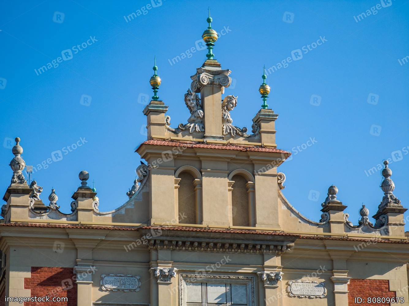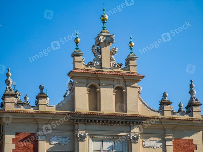 Facade of modern building in Krakow, Poland. Tourism in Europe.