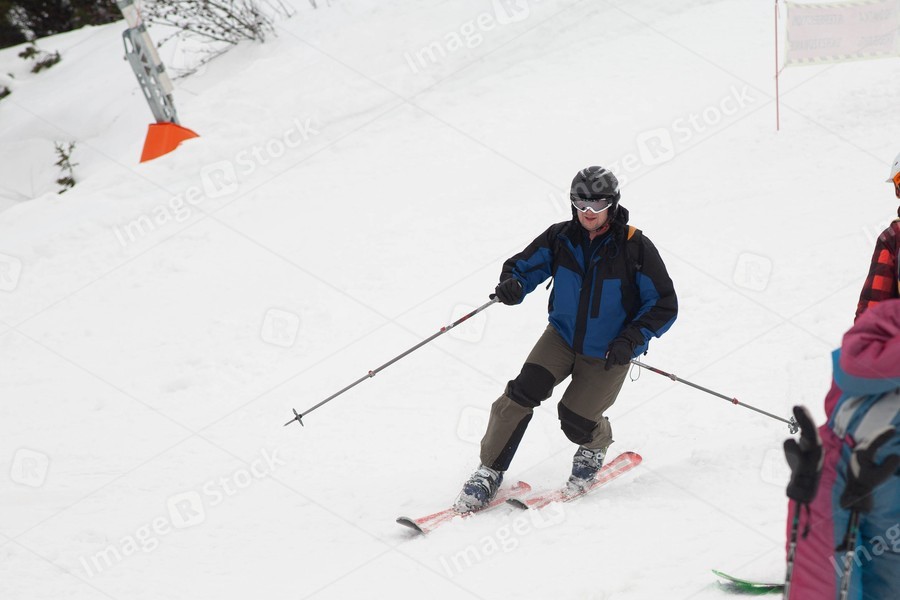 A man goes skiing on a snow-covered ski track. Ski resort. Fast moving. Winter sport.