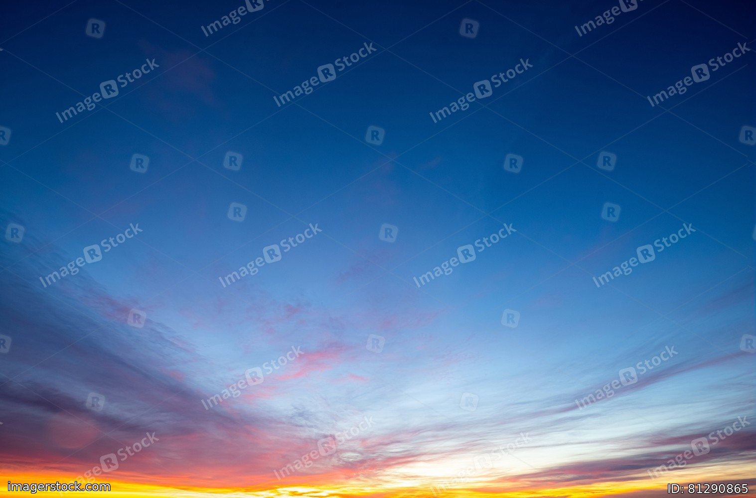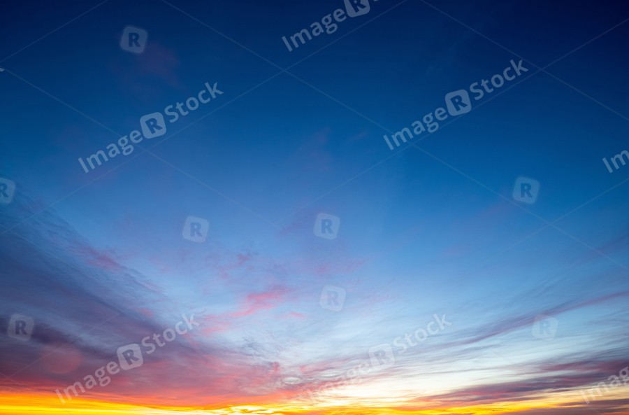 Scenic landscape of sunset sky above sea.