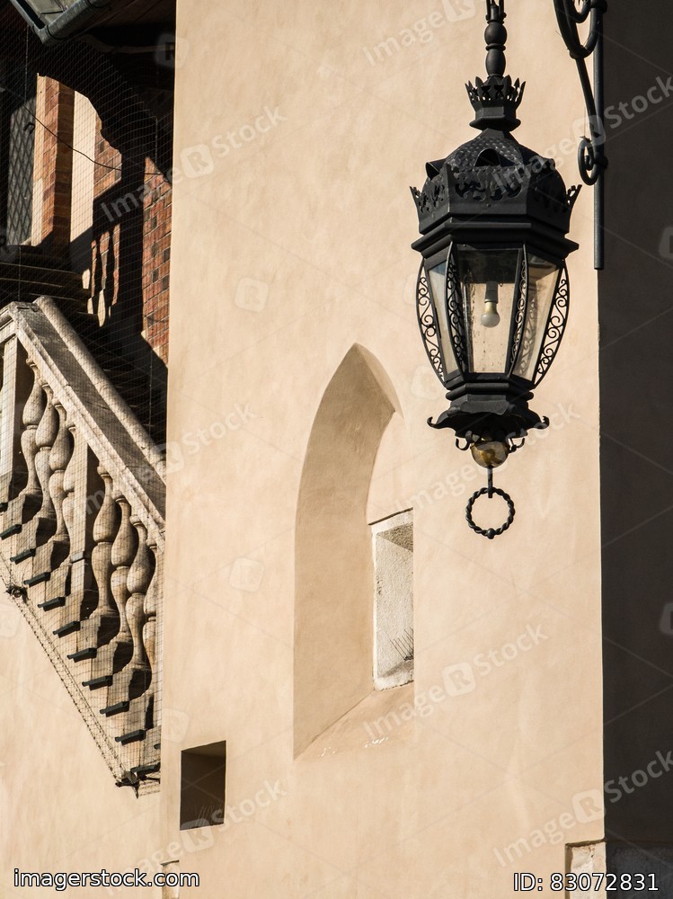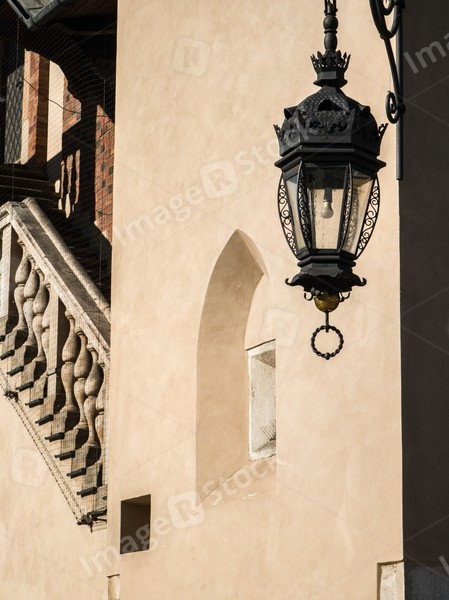 Modern european architecture in Krakow. Close-up of old lantern