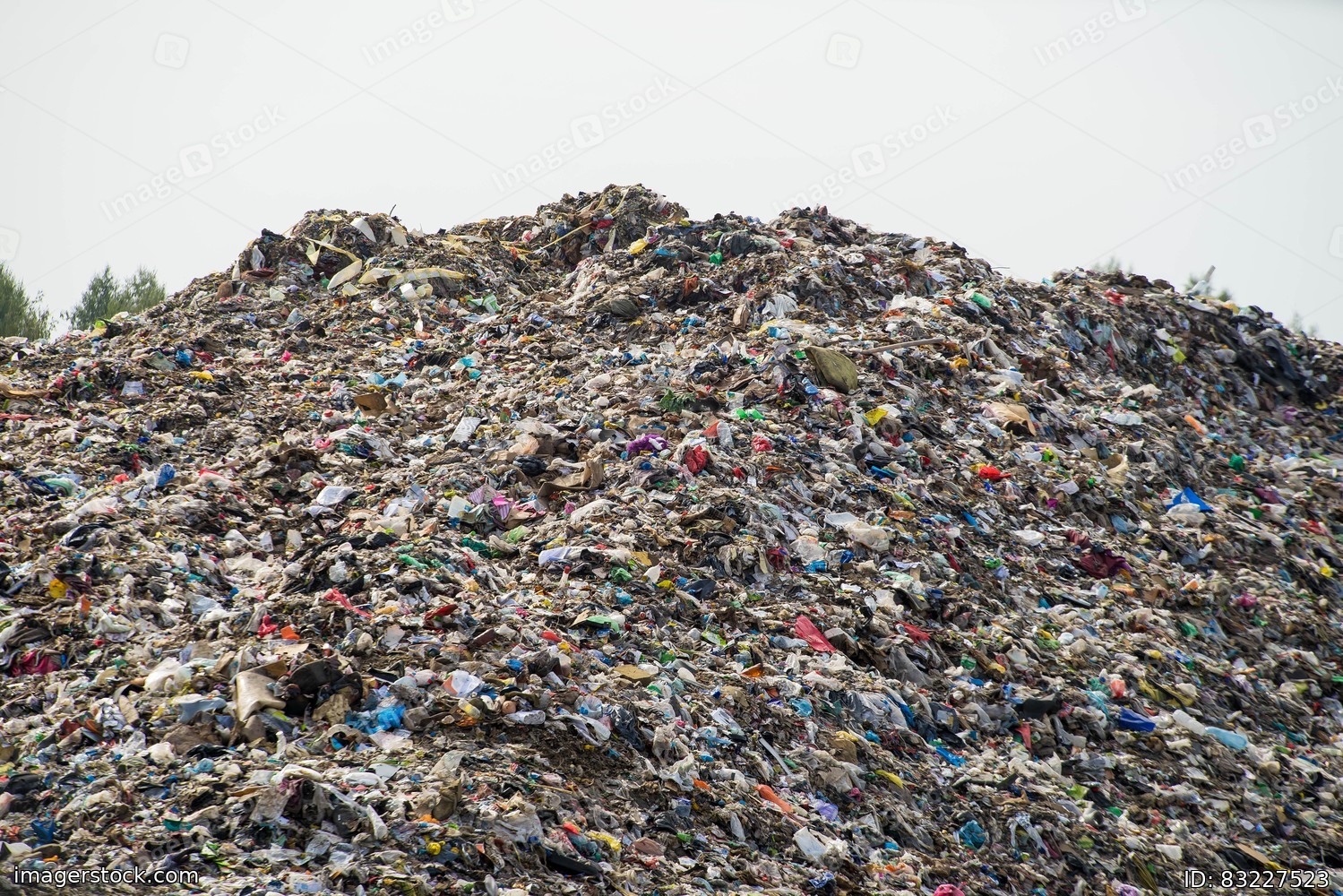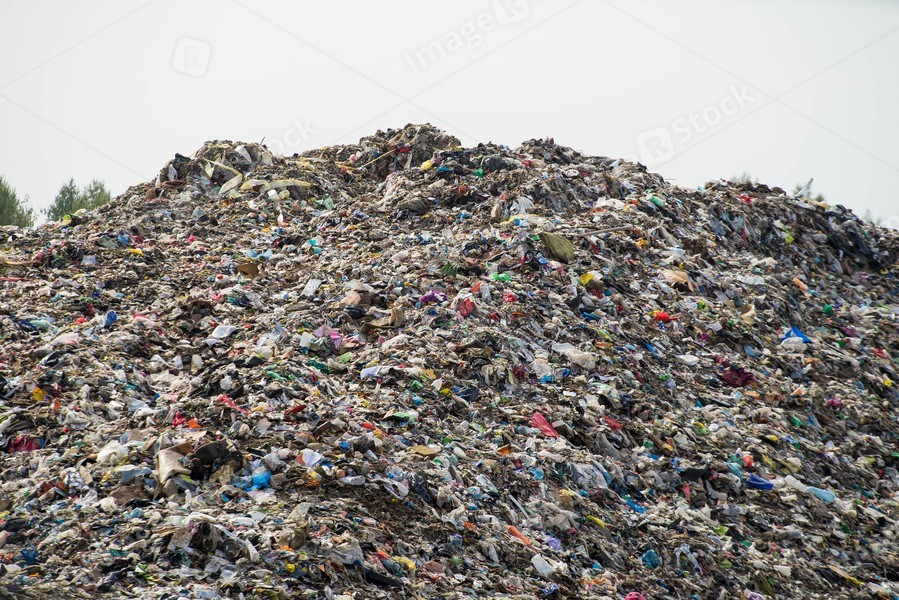 Huge landfill of big city. Large pile of different garbage. Environmental pollution. Waste sorting. Preparation for recycling.
