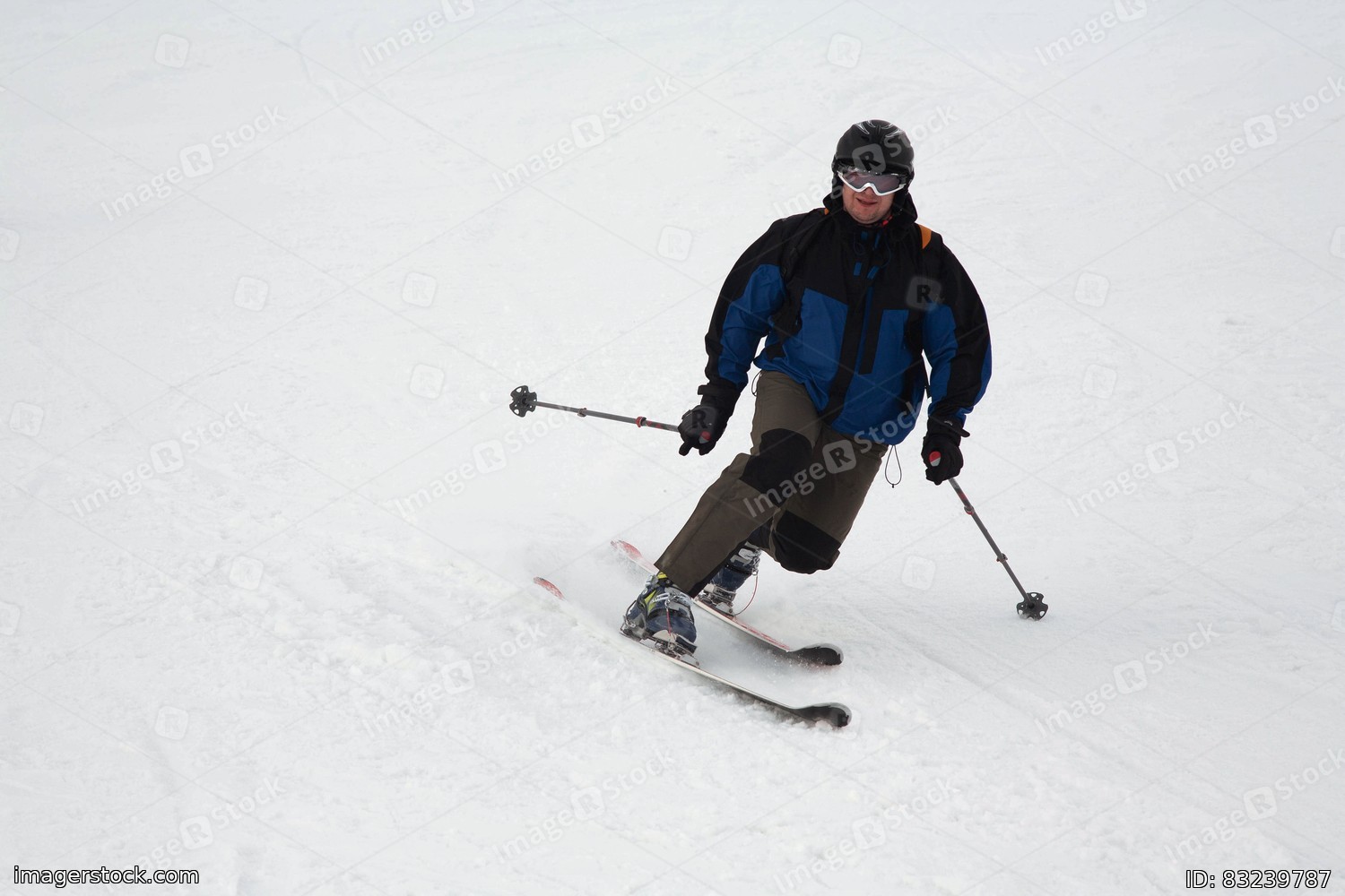 A man goes skiing on a snow-covered ski track. Ski resort. Fast moving. Winter sport.