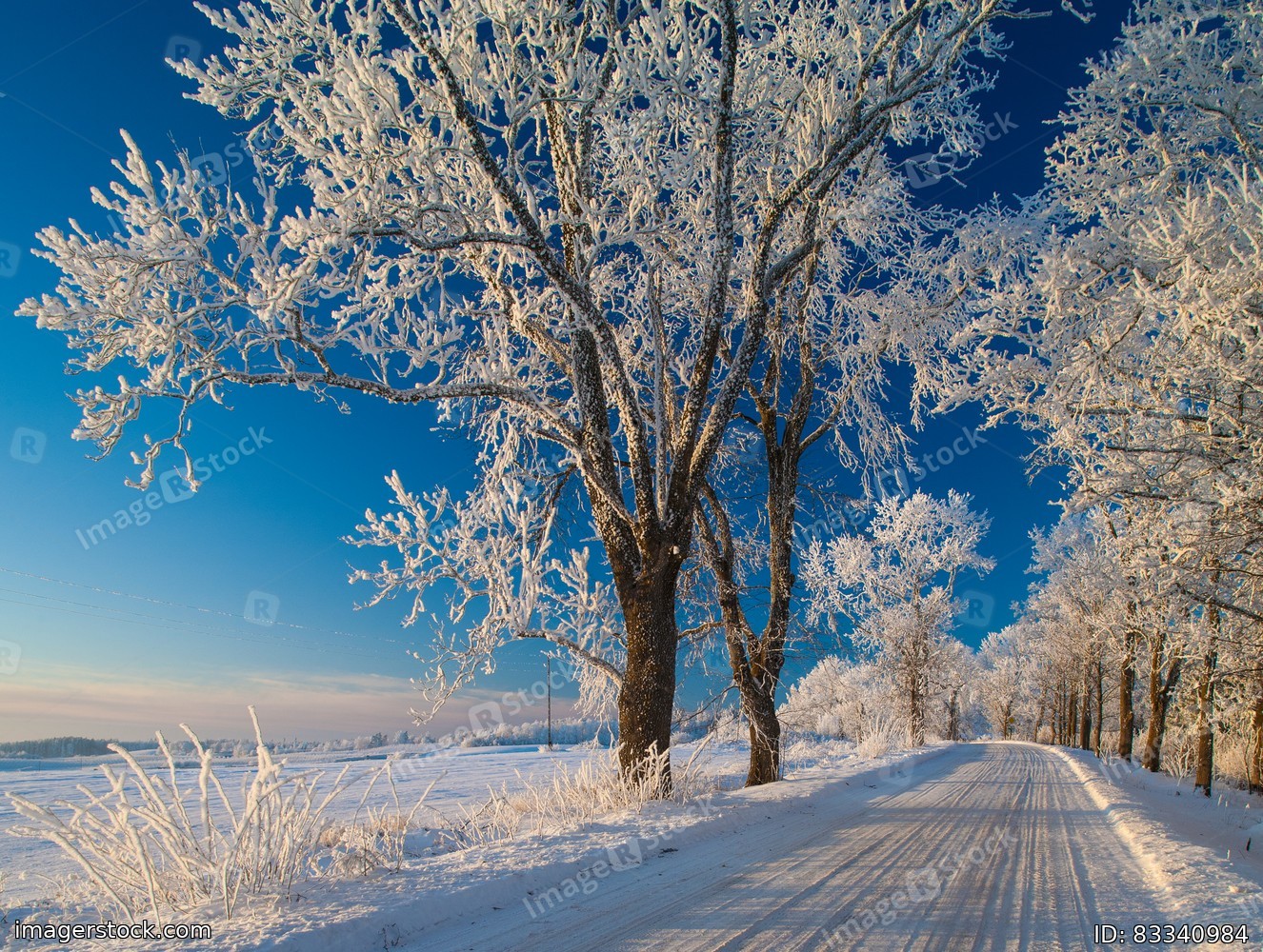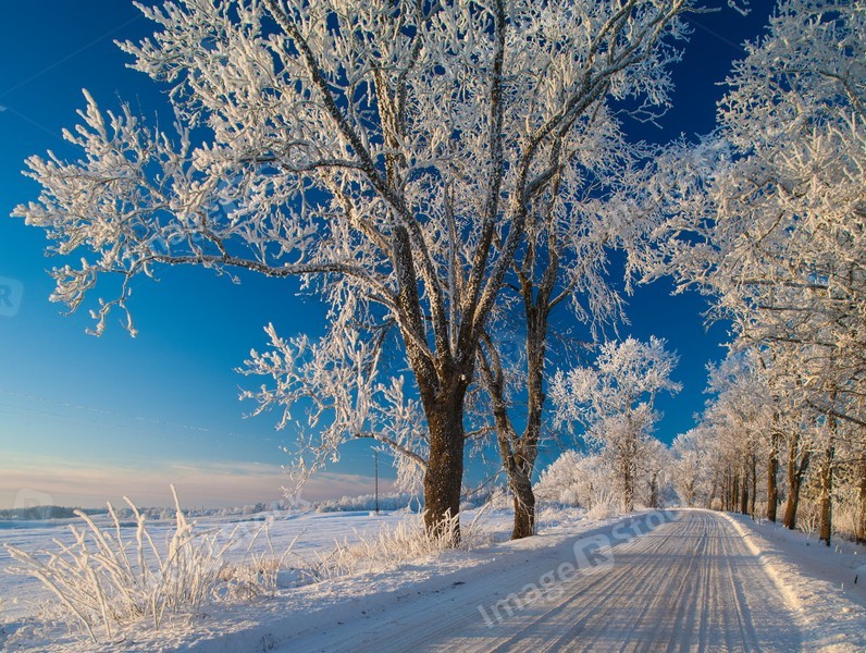 Winter landscapes, road, snow-covered trees,