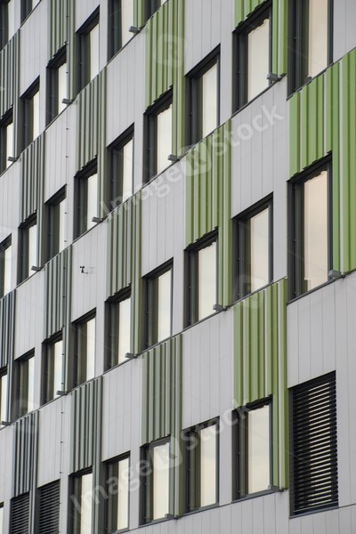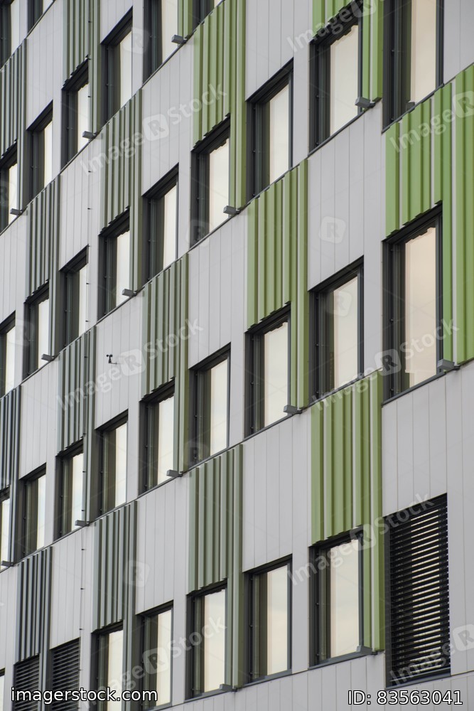 Wall of office building with windows. Modern exterior.