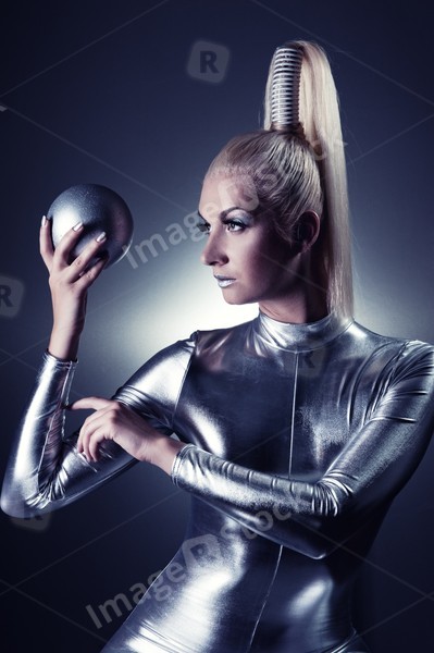 Beautiful cyber woman with silver ball