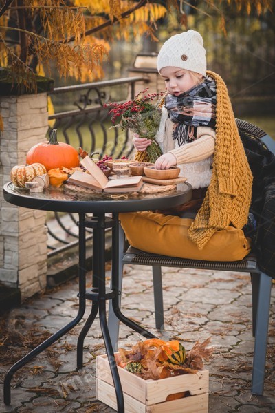 Child reading recipe book to prepare to halloween