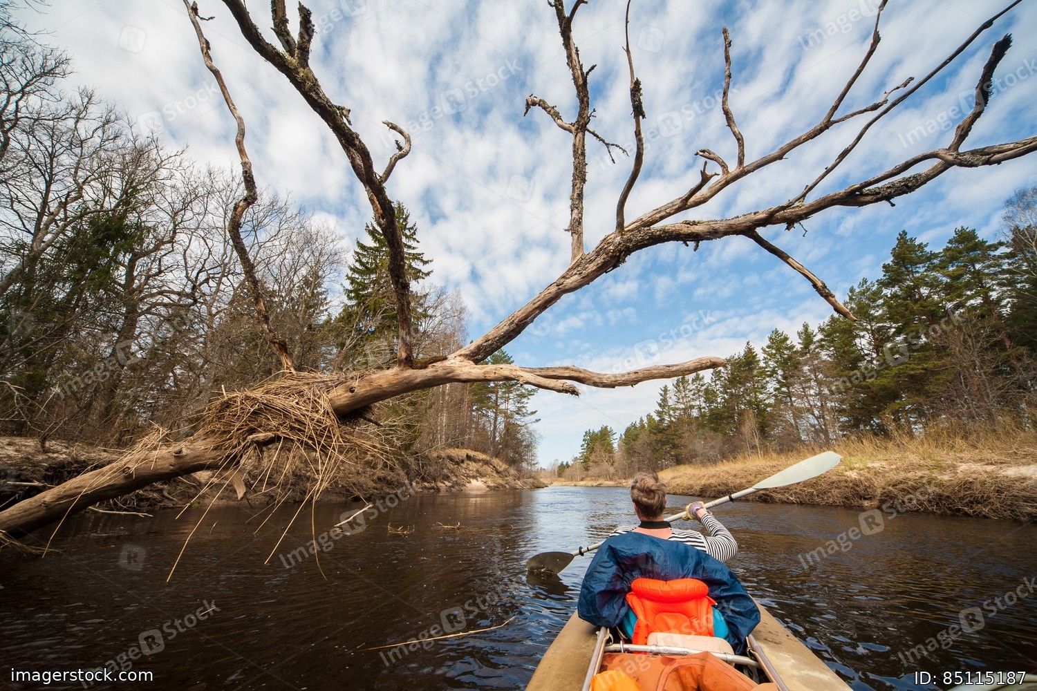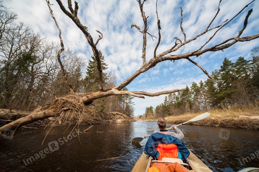 Rafting on the river, spring weather. Canoe.