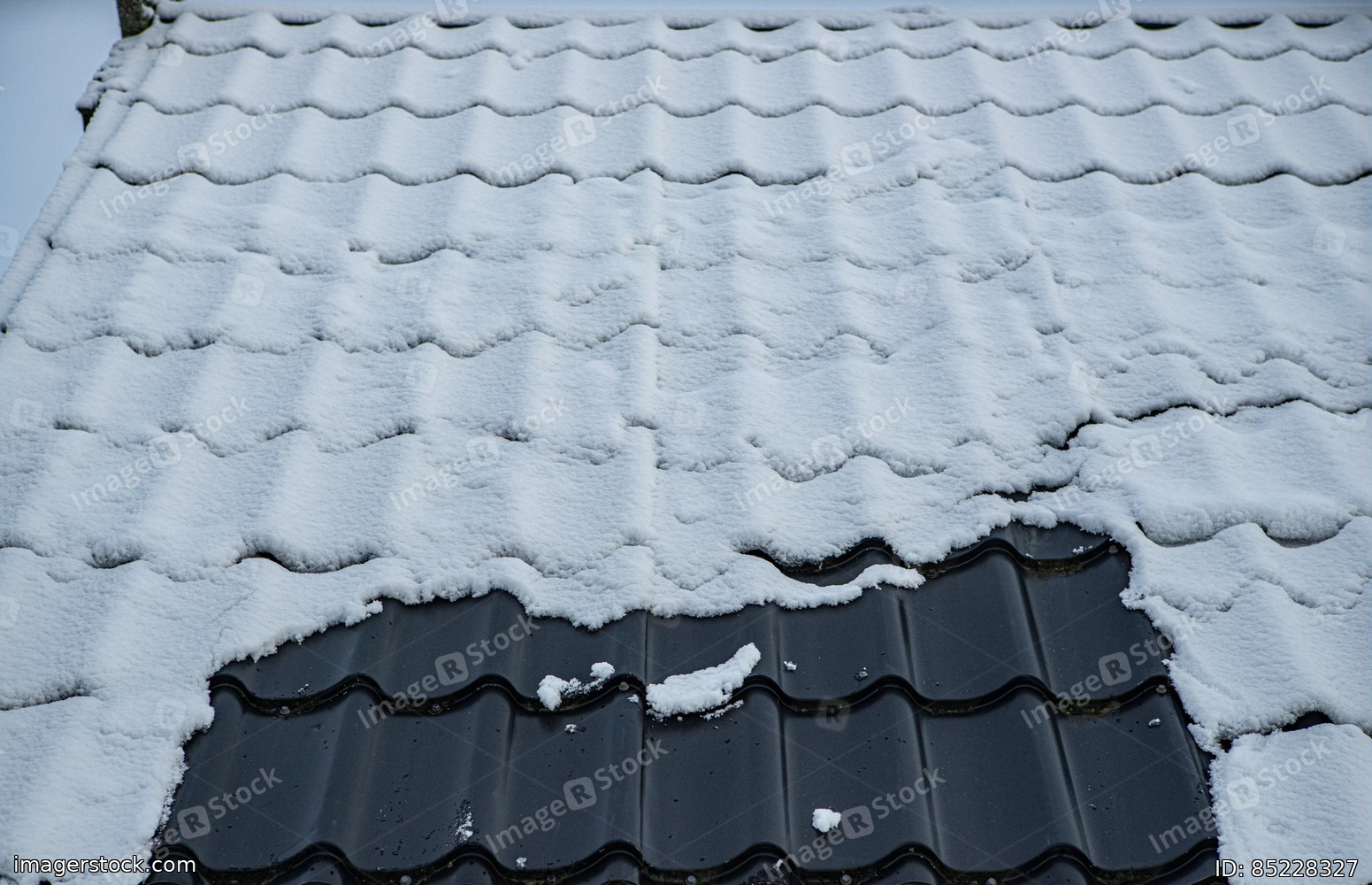 Close-up of snow on a tiled roof